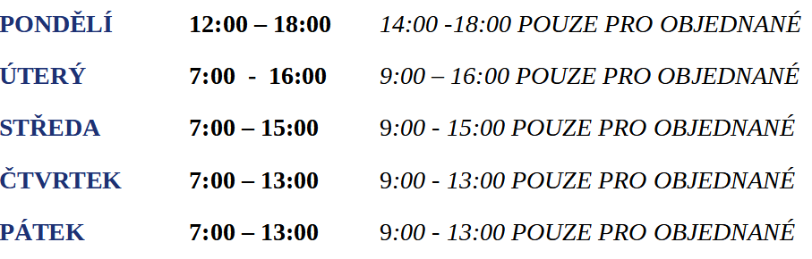ostatní dny v týdnu pak v 8:00 - 9:00 - bez objednání.